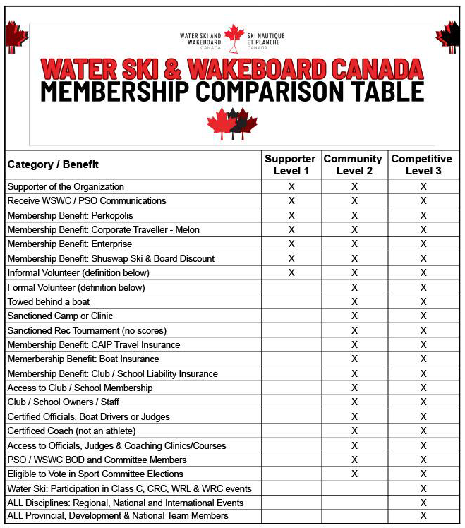 | Youth: Supporter (level 1) | Individuals who support the sport but are never towed behind a boat or cable | $15.00 |